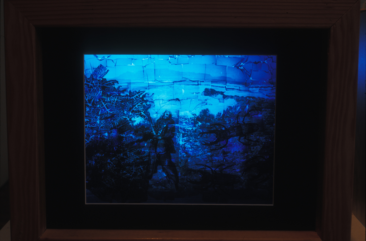 Through film, video, and collage, Uncharted Histories: Pirates investigates the changing political status of pirates by considering the roles they played in the power struggle between monarchs of the sixteenth, seventeenth and eighteenth centuries. Generally defined by their attacks and thievery indiscriminate of nationality, many pirates contributed greatly to the development, growth and success of struggling nations. As countries battled to gain power, a number of pirates facilitated the expansion and colonialization of new lands through the exploration and mapping of uncharted territories. Also positioning the pirate as explorer, the work imagines encounters faced on the shores of undiscovered islands. Pirates noted in the historical record are placed within dark and curious scenarios as they fight off surprise attacks from the unfamiliar surroundings.