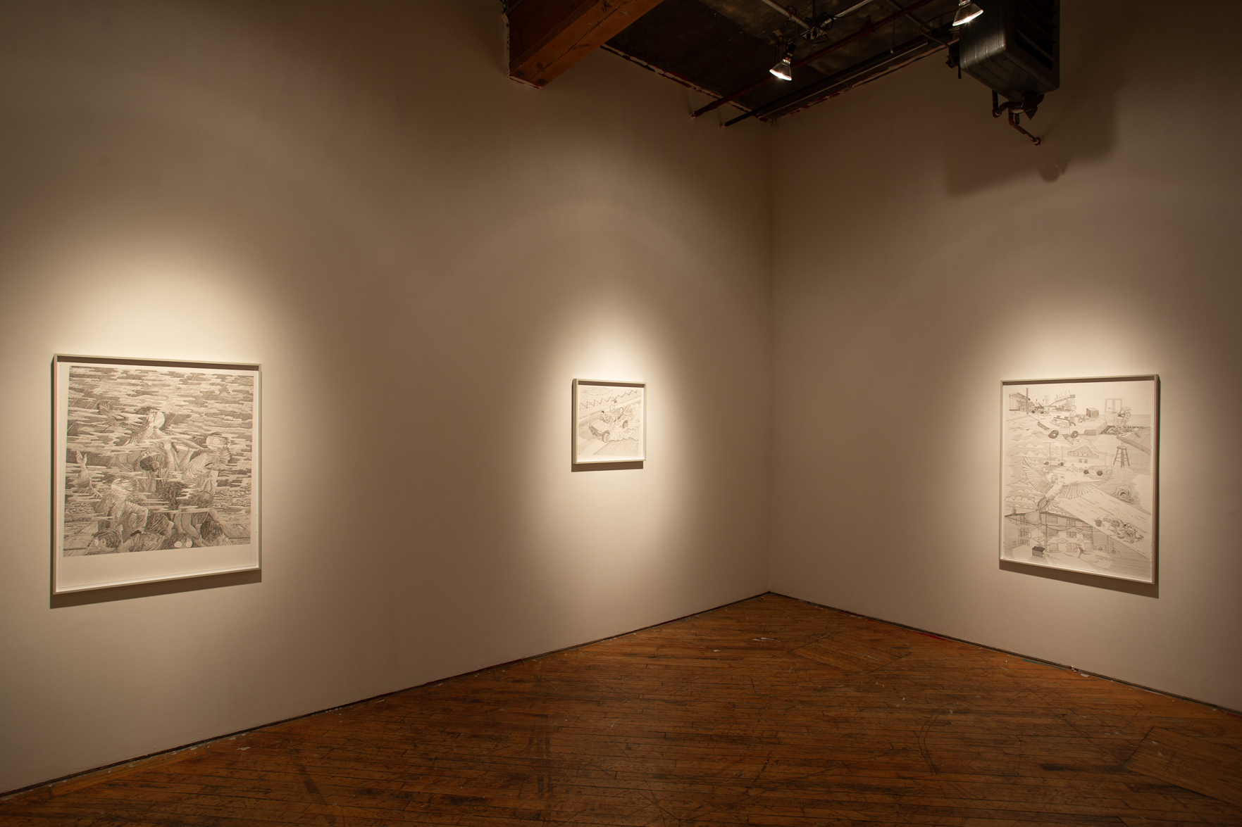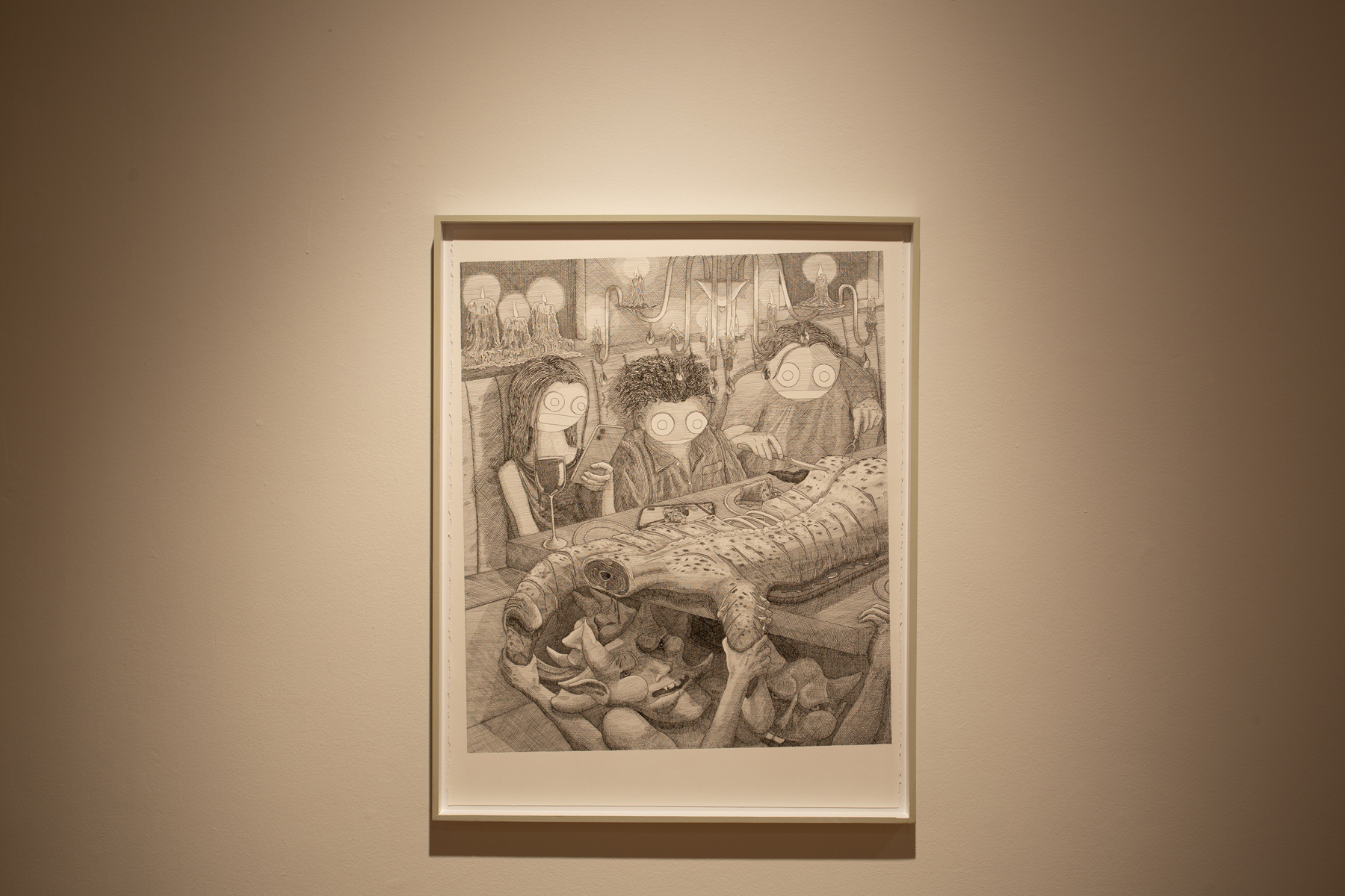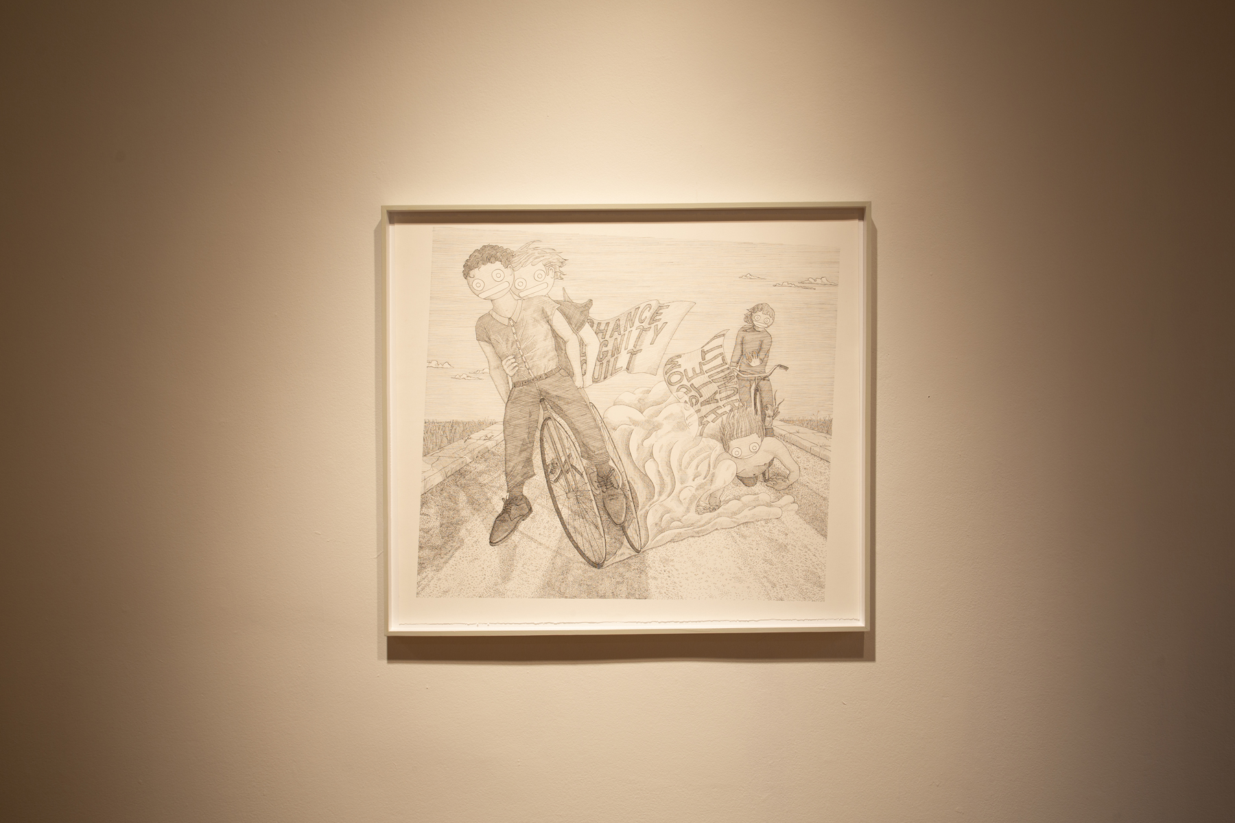 After moving back to his hometown of Regina, Saskatchewan in 2025, he started drawing depictions of the city and the people in it, combining detailed line drawing and increasingly baroque tableau composition with simple, dumb, expressionless, round faces. With a keen eye for the beauty amidst the disturbing, weird, and dysfunctional, Fuh orbits around something of a greater truth – of that place, of growing up, of our moment of alienated sociality.
